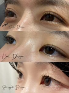 根本(まぶた)はカールして毛先はまっすぐ上向きに上がるデザインです