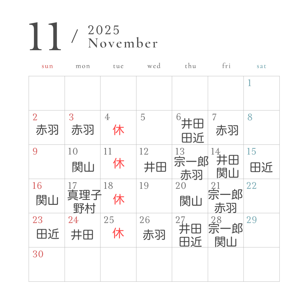 11月SALONDEKOUスタッフお休みカレンダー🗓