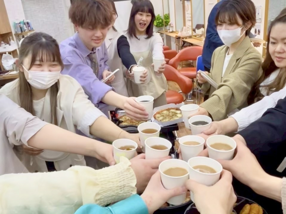 チームワークを大切にしていて、サロンワーク中は、スタッフ間で「ありがとう」と感謝の言葉が飛び交っています!一度ご来店されると、サロンの良い雰囲気が伝わり、お客様にもよく褒めて頂きます。人間関係良好な働きやすい職場で一緒に働く仲間を募集しています。気軽な気持ちで、サロン見学にいらしてくださいね!